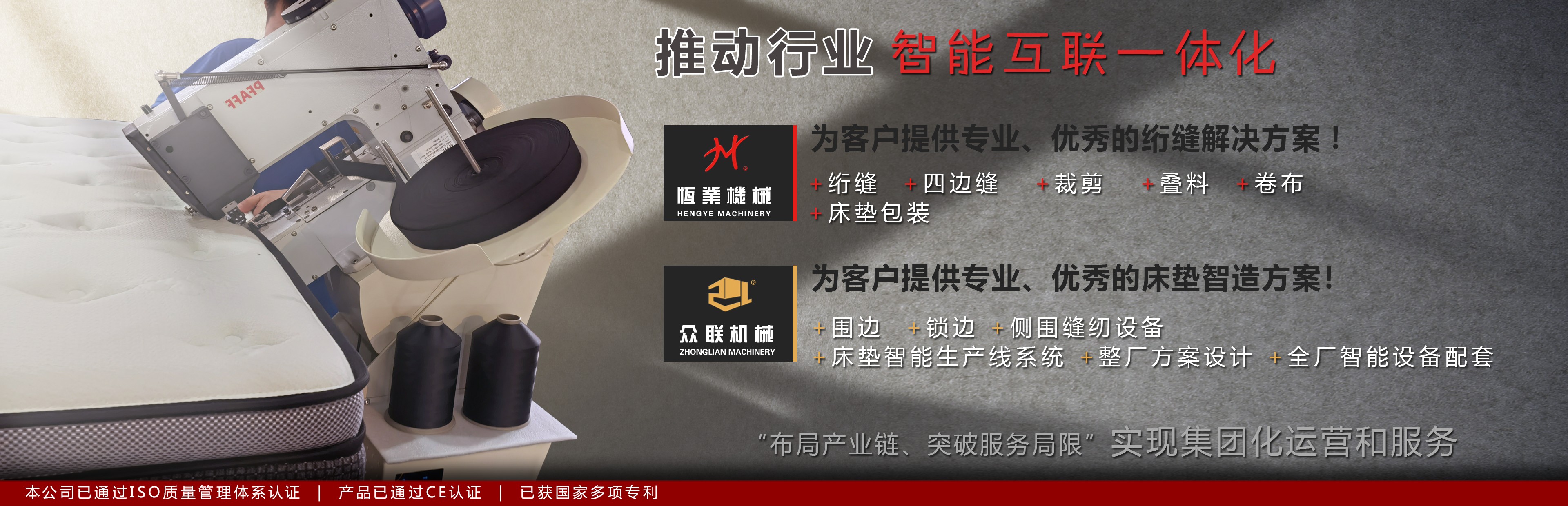 始于1991年,我們一直專注研發(fā)制造絎縫設備.為客戶提供專業(yè),優(yōu)秀的床墊&家紡智造方案!